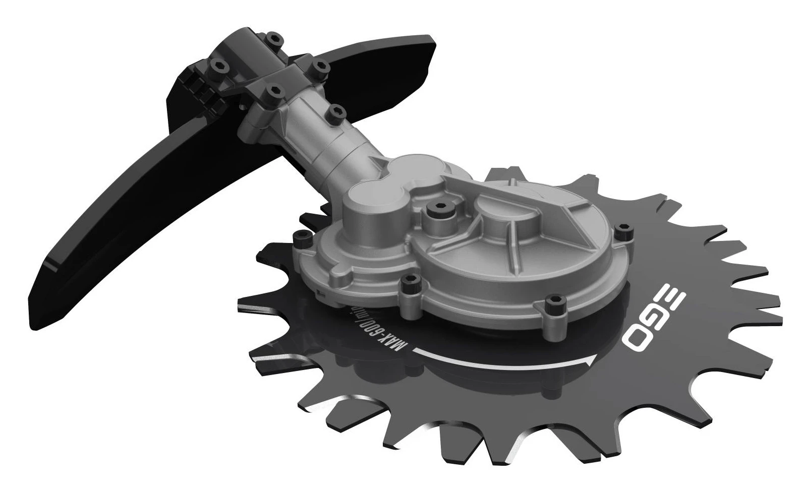 The EGO Power+ Rotocut attachment means the multi-tool now allows greater flexibility when working. The rotocut has a cutting width of 23cm and runs at 450rpm cutting speed. It works with two counter-rotating blades to ensure low throw, making it safer to work in smaller, more confined areas and places in close proximity to vehicles and other objects.