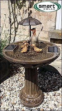 - Charming duck family umbrella design solar water feature will enhance any garden or patio