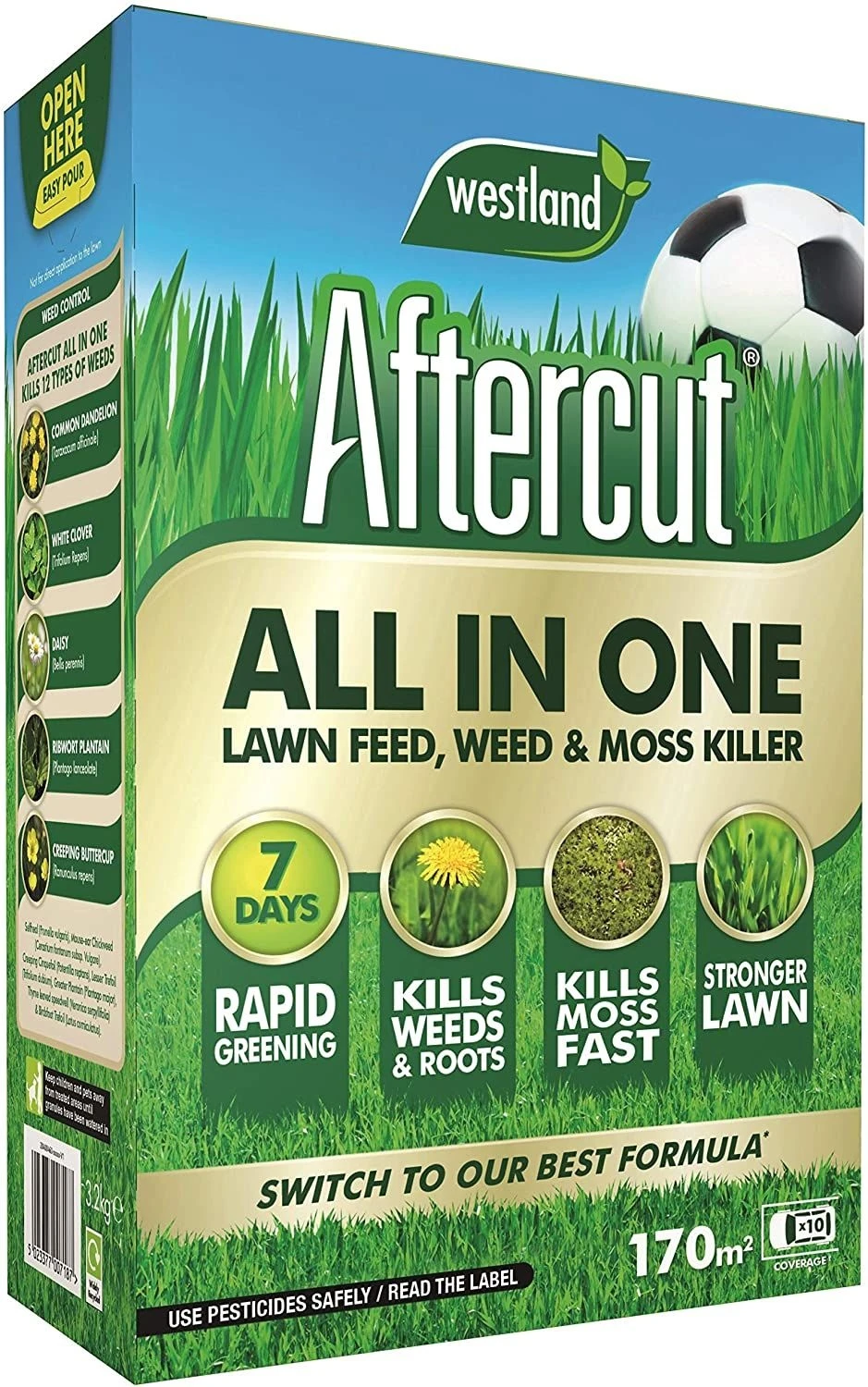 All in one Lawn Feed, Weed and Moss Killer for 7 day rapid greening, which kills weeds and roots and moss fast for a stronger healthier Lawn.